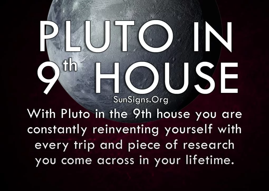 What is the effect of Pluto in the 9th House? With the placement of Pluto in the Ninth House, you become curious about your surroundings and are eager to learn and know more. You keep seeking the truth, which you will eventually uncover, having that you possess great research and investigative abilities.