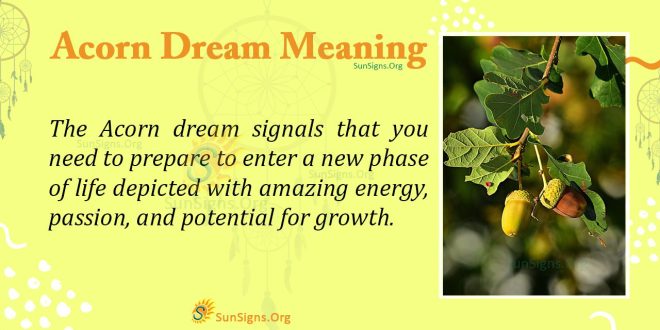 In summary, the Acorn dream signals that you need to prepare to enter a new phase of life. This is depicted with fantastic energy, passion, and growth potential.