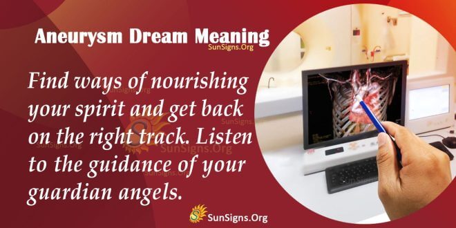 The aneurysm dream symbol urges you to ask for help when you need it. You have control over your life, but there are some things that you cannot do on your own. Do not allow your ego and pride to cause you to fail and lose out on many opportunities. Be ready to make positive changes that will elevate your life and make you better.