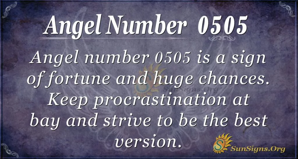 Above everything else, seeing the angel number 0505 is a sign of fortune and huge chances. The number 0505 reminds you to keep procrastination at bay and strive to be the best version. Even more, remember to own your greatness. Take the time every single day to walk in Divine light. Share the love.