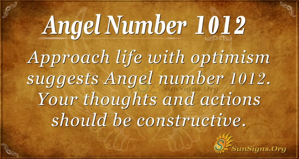 What does 1012 mean spiritually? It would help change your perspective to a positive mindset in all situations instead of constantly expecting the worst. You attract more good things and better yields as you cultivate a more optimistic attitude. So try to brighten your vise of the world by infusing positivity into your thought patterns.