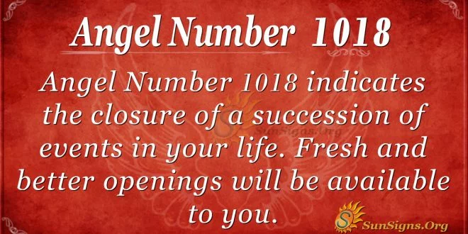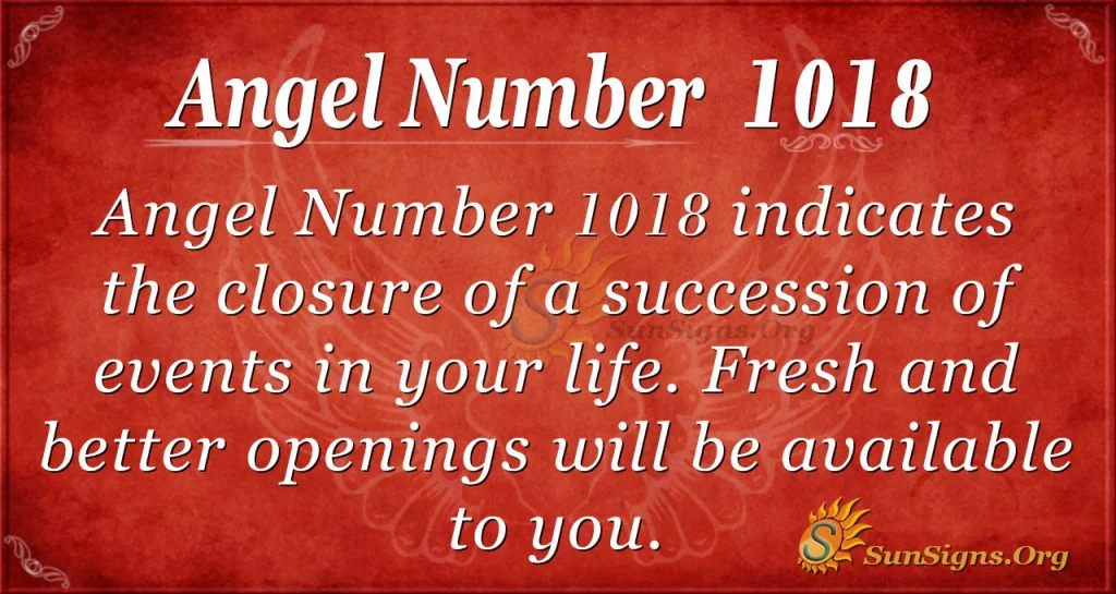 Angel Number 1018, when it recurs in your life, often indicates the closure of a succession of events in your life. The angels assure you that fresh and better opportunities will be available to you in the coming days. The termination of an event marks the start of a new phase, and there is no need for anxiety or tension.