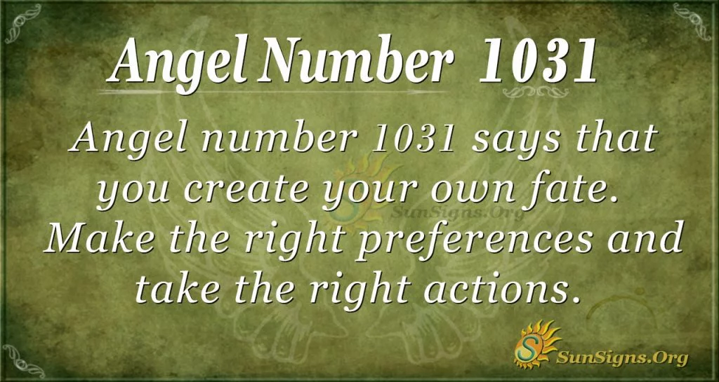 1031 spiritually suggests that you should listen to the messages of your angels and spiritual masters as you strive to achieve your life goals. You have their complete support in formulating your ambitions and working towards their completion. Therefore, the angels will direct you to be bold, confident, and resolute.