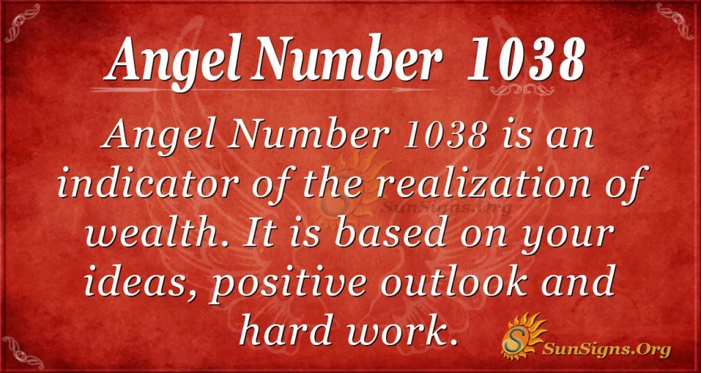 Angel Number 1038, when it repeats itself in your life, is often an indicator of the realization of wealth. It shows affluence in your professional life based on your capabilities. Besides, you can obtain prosperity and opulence based on your ideas, positive outlook, and hard work.