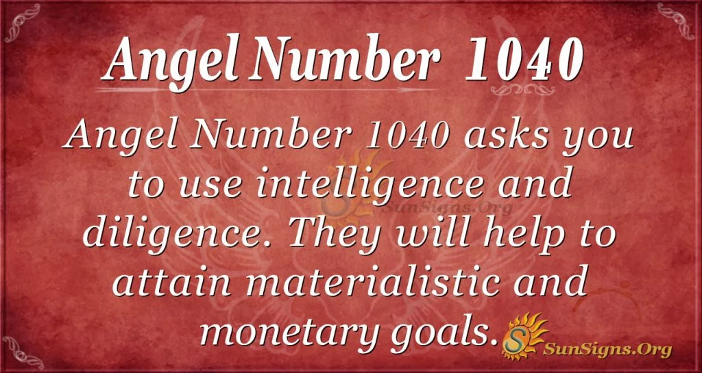 Number 1040 suggests that whatever you sow today will yield good returns in the days to come. It is asking you to use your intelligence and diligence to achieve your material and financial goals.