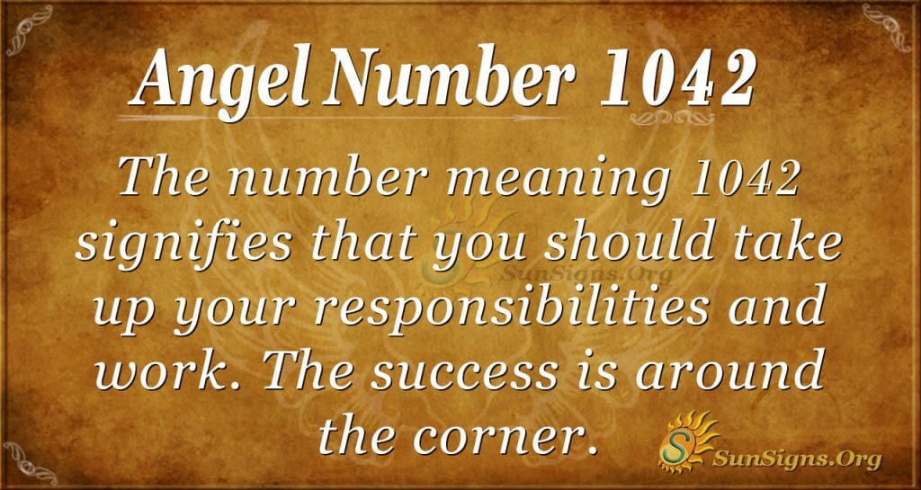 The number meaning 1042 signifies that you should take up your responsibilities. Also, work because success is around the corner. Failure to pick up your responsibility might bring a downfall. Running the opposite of success.
