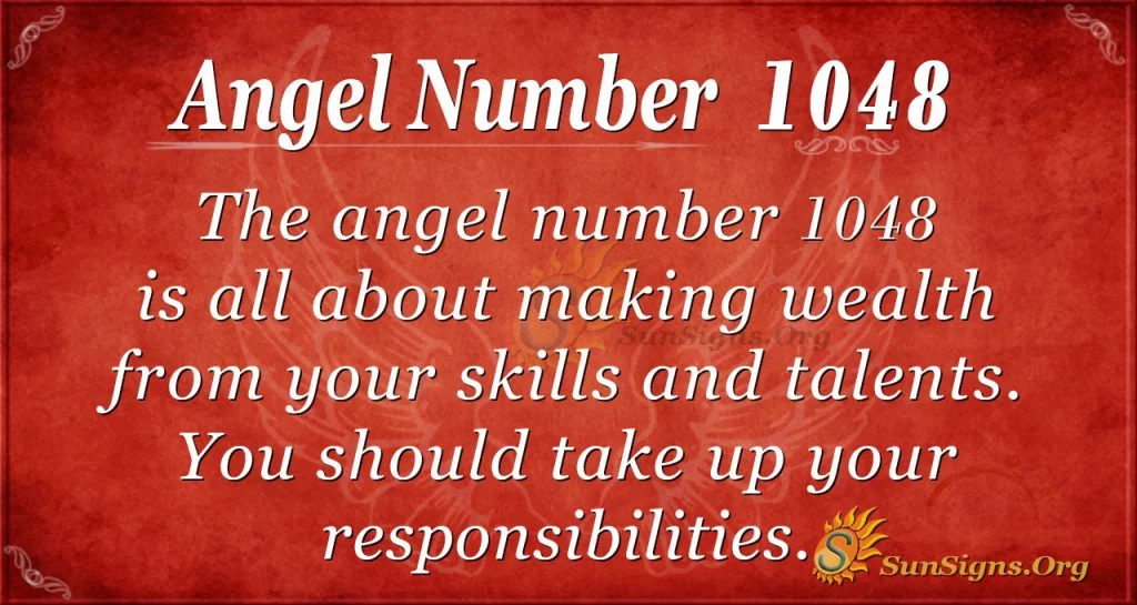 What does 1048 mean spiritually? Pray to God to make you more responsible and accountable for the gifts and talents He bestowed on you. Your angels are nagging you to act more maturely and responsibly. So, it would be best to be more spiritually sensitive to understand unique ways and tips to boost your responsibility.