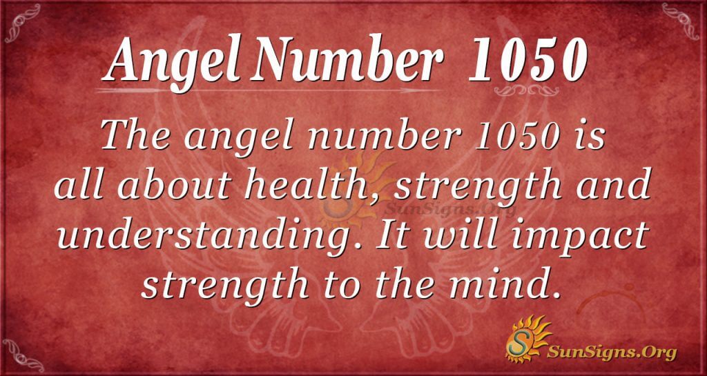 What does 1050 mean? The angel number 1050 is all about health, strength, and understanding. If a weak mind regularly sees this angel number, it will impact the strength of the mind. But this angel number 1050 also has its negative side. The negative side includes a lack of faith, fear, and understanding, but these are unlikely to occur. If you have seen the number 1050 regularly, it means spiritual healing and understanding.
