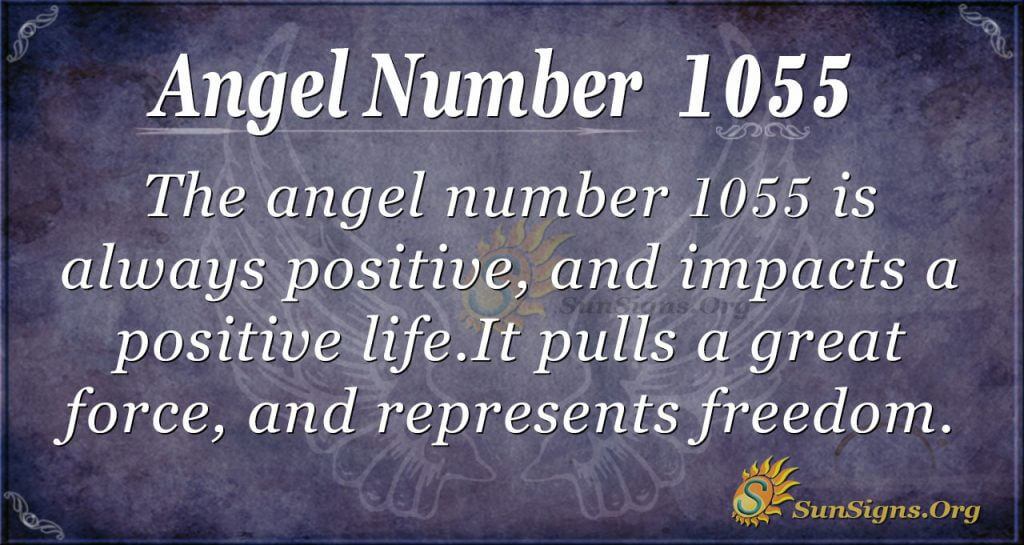 What is the significance of 1055? The angel number 1055 pulls a great force and represents freedom. Joining the attributes of all these mixed numbers signifies the impacts of the number 1055. The angel number 1055 is always positive and impacts a positive life. Usually, it doesn’t impact negativity but can impact aggressiveness and dominance if it is negative.