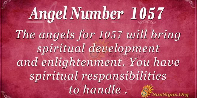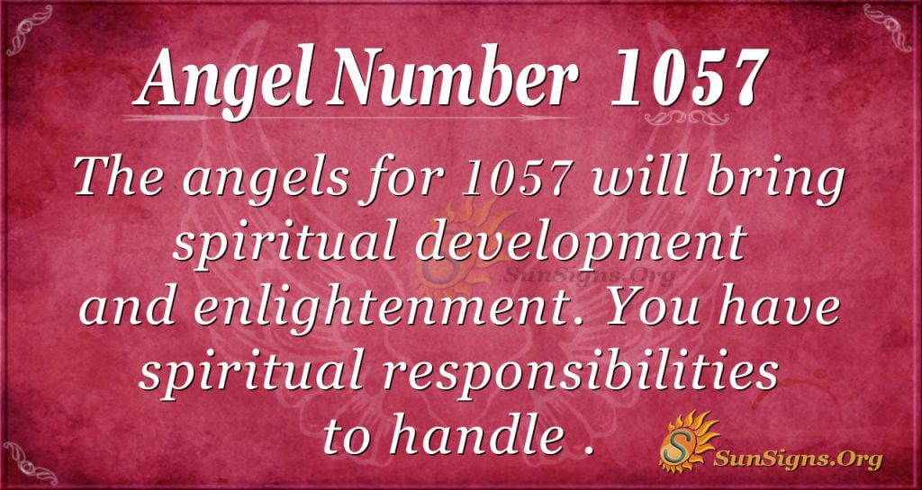 Angels for 1057 will bring spiritual development and enlightenment. This means you have responsibilities to handle, which is also a spiritual duty.
