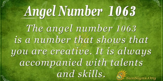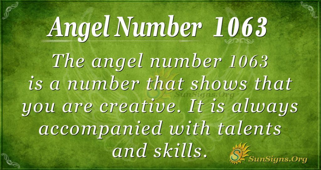 The guardian angel for 1063 tells you that you have skills and talents that need to be put to work; all you have to do is start building your skills and talents.