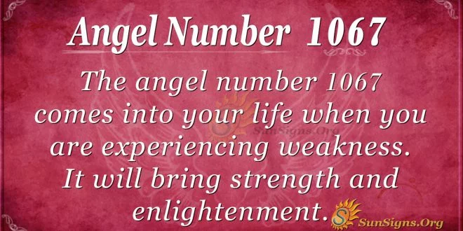 The 1067 angel number is a number that brings spiritual awakening. It is the influence of numbers 1, 0, 6, number 10, number 16, 17, 106, 107, 167, 67. The angel number 1 represents force and authority. It makes you create your own realities. It is the number of power and will always bring fulfillment and achievement.