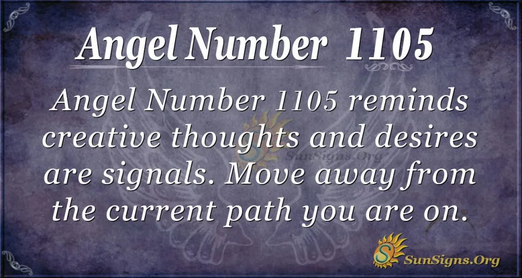 With a gentle push, Angel Number 1105 reminds you that those creative thoughts and desires coming to your mind are signs that you need to move away from your current path. These creative touches lead you to better times and the deep and pure happiness you seek. Stay true to what your angels for number 1105 encourage you to do, and you’ll find that sense of accomplishment along the way.