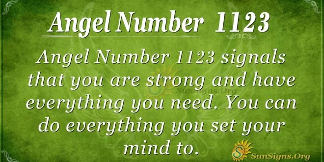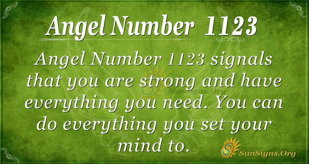 Number 1123 asks you to remember you are strong and have everything you need to complete your soul mission. You can do everything you set your mind to.