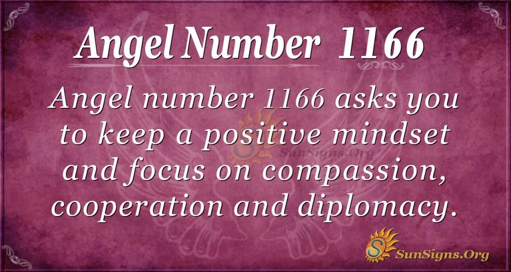 Angel number 1166 asks you to keep a positive mindset and focus on compassion, cooperation, and diplomacy. Keep your eyes open and your mind focused.