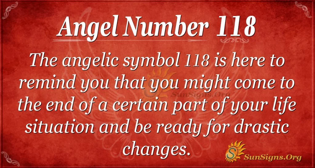 The angelic symbol 118 also reminds you that you might come to the end of a particular part of your life situation. This means that you should be ready for drastic changes that will push you to experience new dimensions of life. Take on these changes with passivity. Remember always to be humble enough to remember your duty to serve mankind and to illuminate the path for those who seek light and truth.
