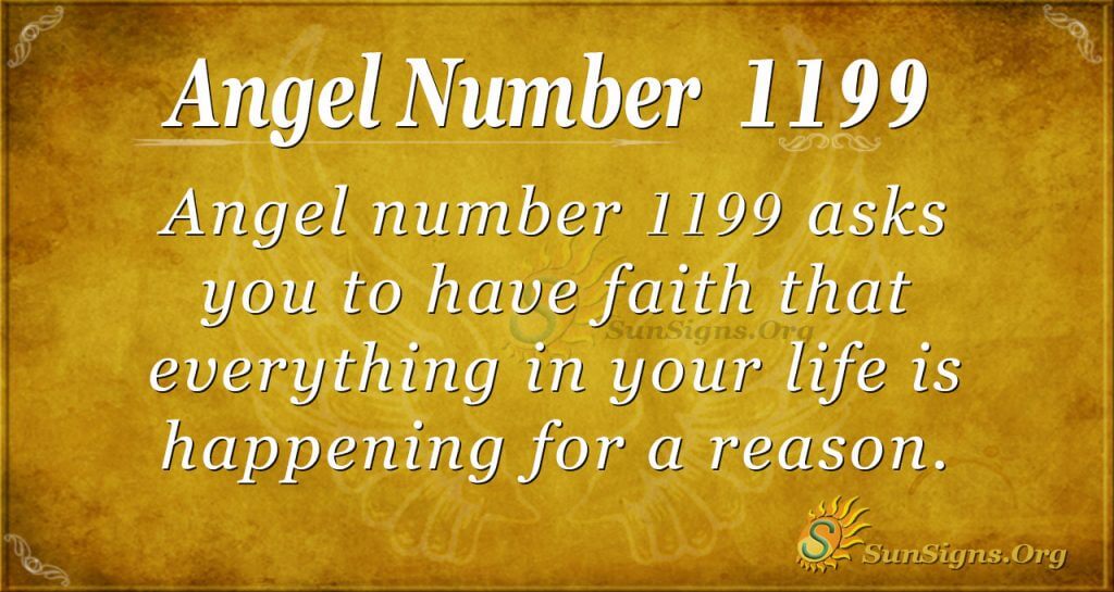 The number 1199 is a strong one regarding matters of spirituality. Your guardian angels want you to have a healthy spiritual life. A healthy spirit means a good relationship with the divine realm. Work on your spirituality through spiritual awakening and spiritual enlightenment.