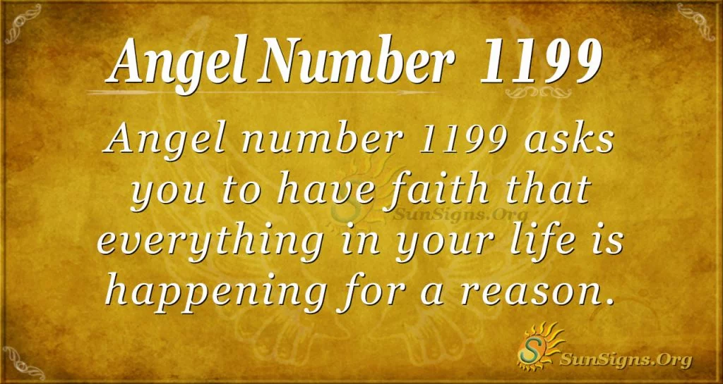 Angel number 1199 sends a powerful message by combining its numerical components. This may be a sign that certain times are about to end for you and that all you should do is welcome it with an open mind. Angel number 1199 asks you to believe that everything in your life is happening for a reason and not just arbitrarily, even if it doesn’t seem that way.