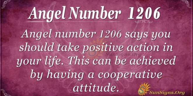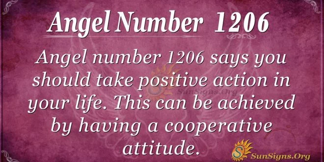 The number 1206 suggests taking positive action by allowing your inner guidance to guide you. You should set a positive example for others to learn from, and you can achieve this by having a cooperative attitude.