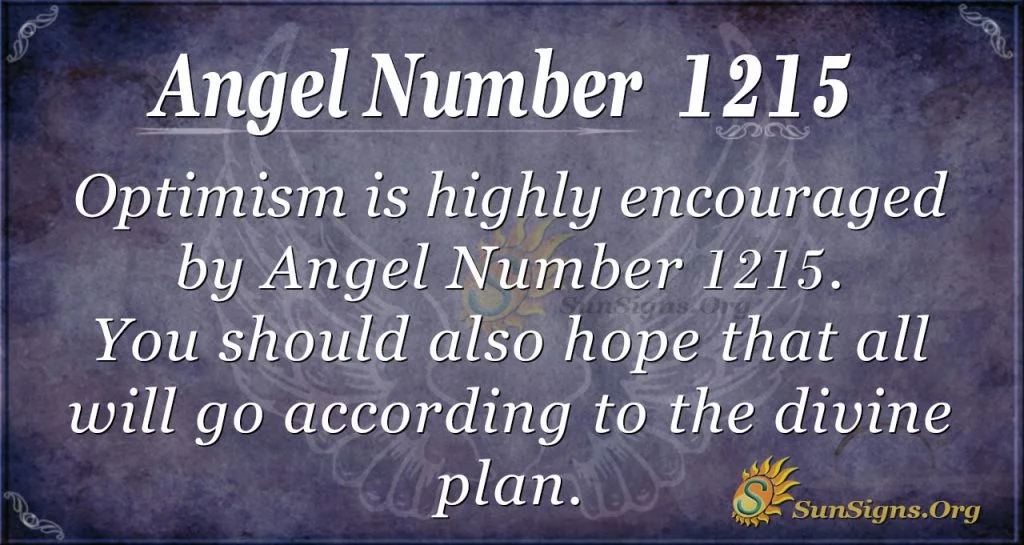 What does 1215 mean? The Angel number 1215 carries a message from the angels that whatever changes are happening in your life are meant to bring good to you. The changes will lead to long-term benefits in your life. The angel number indicates that the changes occurring are in alignment with your life’s purpose.