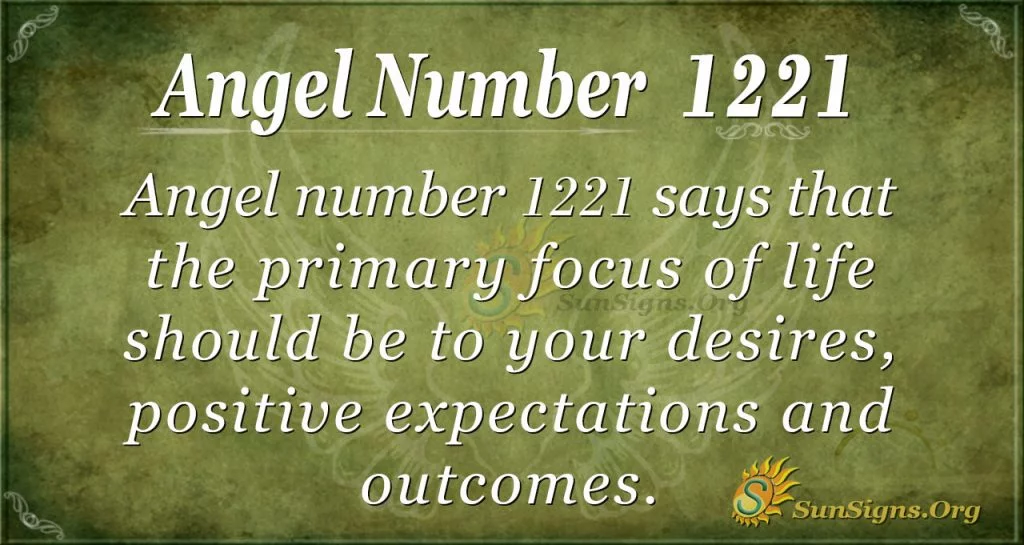 Angel number 1221 says that the primary focus of life should be on your desires, positive expectations, and outcomes. Your fears or doubts should be given to the angels for healing and transmutation. The negativities of your life should also be replaced by positivity.