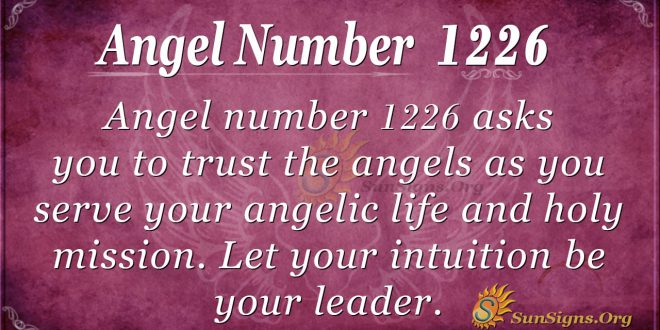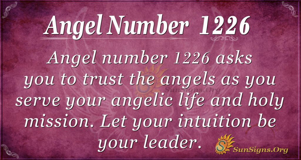 1226 angel number asks you to trust that angels are with you in every step as you serve your angelic life and holy mission. Let your intuition be your leader, and be ready to receive support from unknown sources and unusual means. Equally, you can become your purpose.
