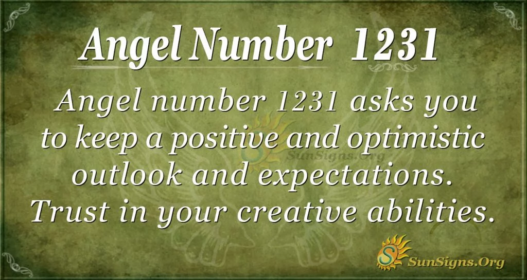 1231 angel number asks you to keep an optimistic outlook and expectations. Trust in your creative abilities. Stay focused on what you do want rather than what you don’t want.
