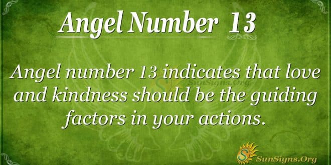 The meaning of angel number 13 reveals that you should live with love and kindness to gain rewards from the world. Your angels are trying to convey that you should live compassionately and with lots of love. This number comes to you as an indication that you should appreciate all the challenges and struggles that you go through in your daily endeavors. All your pain and hard times will produce great fruits if you become more optimistic.
