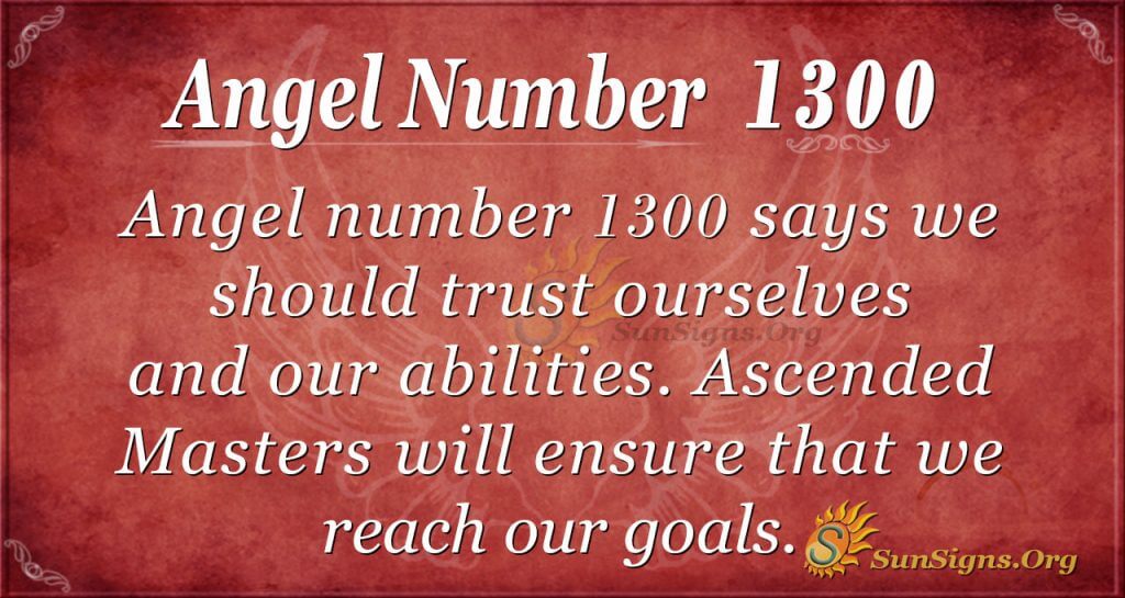 Angel number 1300 is a prompt from the angels for us to take the following steps on our life path. 1300 reminds us that we should not fear change, as the angels guide and assist us on our journeys. Angel number 1300 says we should trust ourselves and our abilities as the Ascended Masters are by our side and will ensure we reach our goals.
