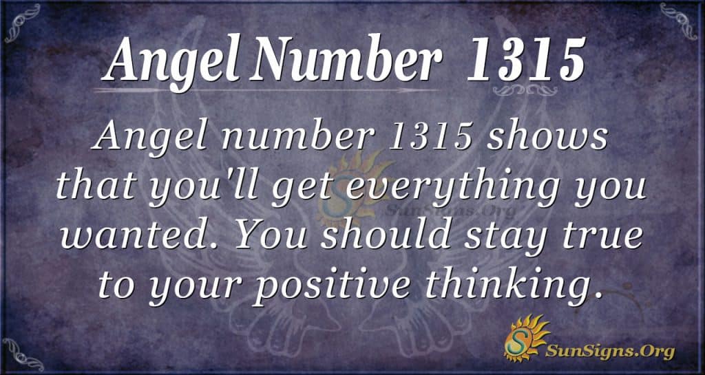 Congratulations on all your hard work; Angel Number 1315 shares that all the positive energy you have put into the universe has returned to you. As such, you will see that your desires for your life will come to fruition.