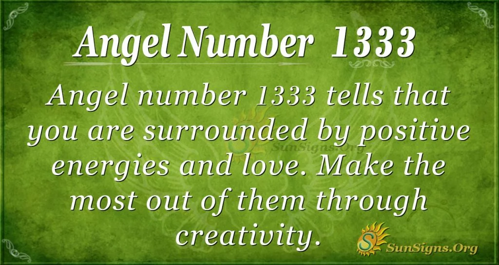 Angel number 1333 further tells you that positive energies and love surround you. You should make the most out of them through creativity. It would be best if you were prepared to expand and develop your spirituality in new and exciting ways and look for opportunities to express yourself sufficiently.