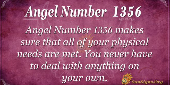 Remember that you are not alone, says Angel Number 1356. Your angels are there to ensure that all of your physical needs are met and that you never have to deal with anything on your own.