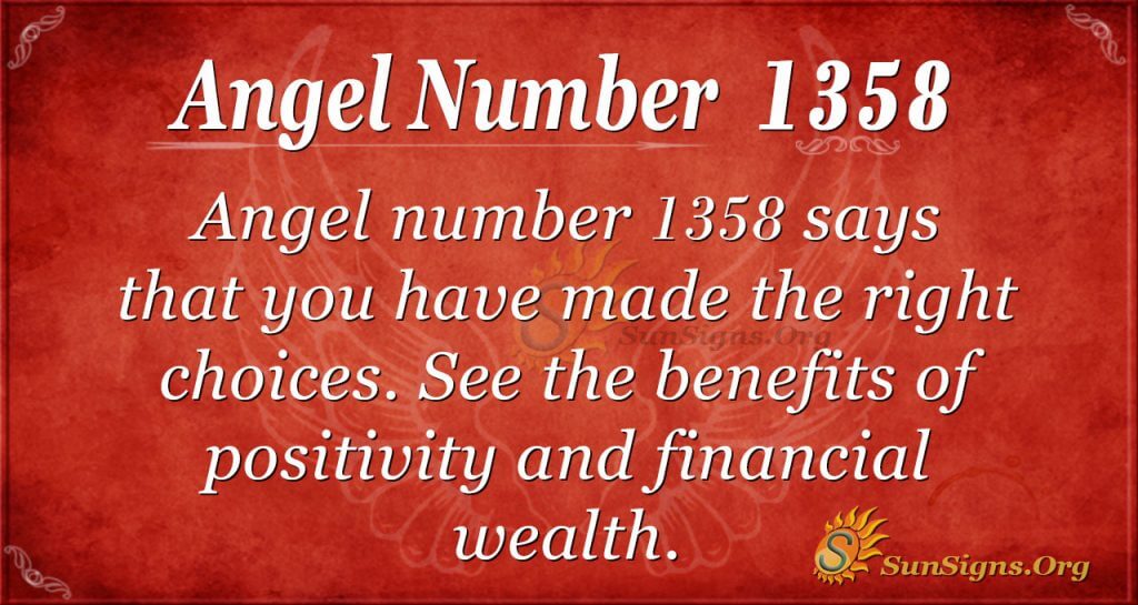 Angel number 1358 says that you have made the right choices, and soon, you will see the benefits rushing back to you regarding positivity and financial wealth. You have done well at creating a fantastic future, so take the time to enjoy it as best you can.
