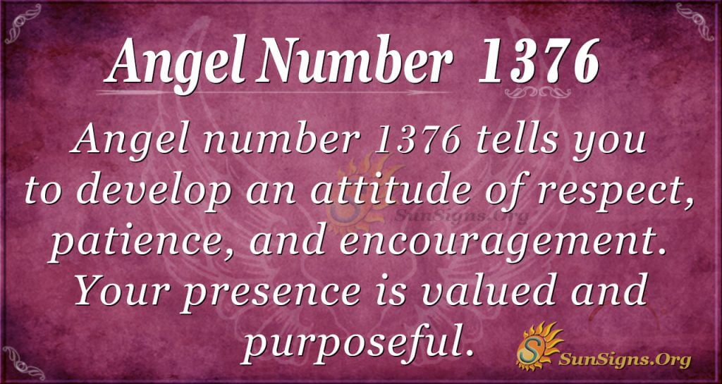 Angel number 1376 tells you to develop an attitude geared towards respect, patience, and encouragement. This will help you to acknowledge that your presence is valued and purposeful.