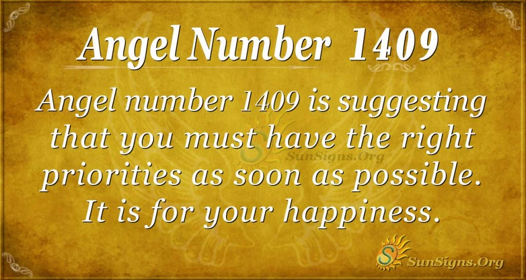Your angels for number 1409 suggest through the appearance of this angel number that you have other priorities that need to be righted as soon as possible. It is for your happiness.