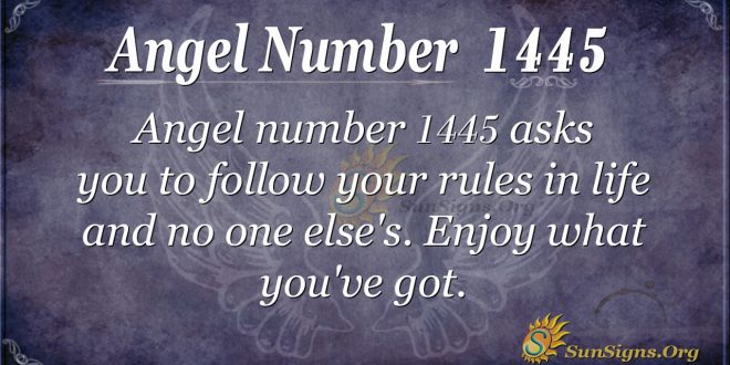 Angel Number 1445 encourages you to uplift your life and yourself by indulging in activities that will make your life meaningful. Receive enlightenment in your life by focusing on the things that matter and those that nourish your spirit. The sooner you realize that the world does not revolve around you, the sooner you will find your true life purpose.