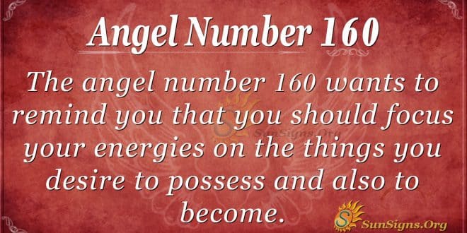 The angel number 160 reminds you to focus on what you desire to possess and become. Your thoughts eventually make up what you become. Your dreams can become a reality by persistently seeking to accomplish them.