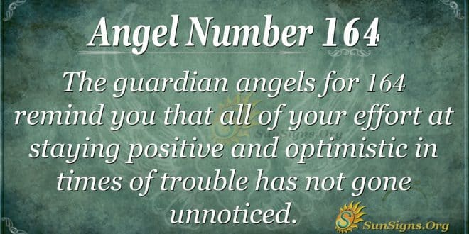 The guardian angels for 164 remind you that your efforts at staying positive and optimistic in times of trouble have not gone unnoticed. The angels are here to give you a break when you need one.