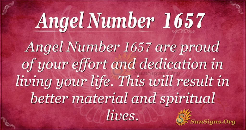 Explaining with pride in your effort and dedication, Angel Number 1657 wants you to know that you’ve put the work and motivation into living your life. You will see your material life and spiritual life improve simply because you made an effort to achieve a lot in your life, and you have done it perfectly in terms of your angels.