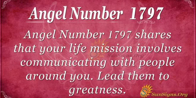 Reminding you of your importance and value to those around you, Angel Number 1797 shares that your life mission involves reaching out and communicating with the people around you who are waiting for you to lead them to greatness.