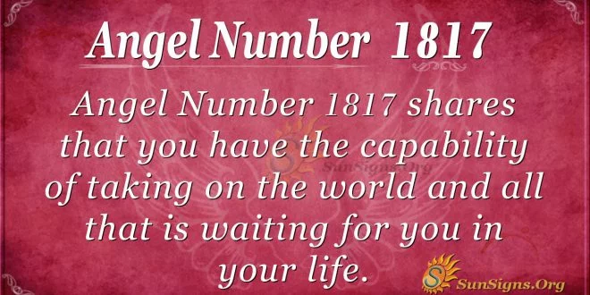 What does 1817 mean? Able to see inside of you to what is waiting to be let out, Angel Number 1817 shares that you can take on the world and all that is waiting for you in your life. You can progress into a future full of great things if you allow yourself the freedom to do so.