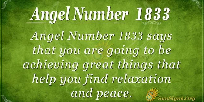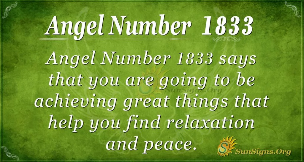 What does 1833 mean? The significance of 1833 shows that you have a message from our ancestors. Sharing that they are in your life to help you for the better, Angel Number 1833 says that you will be achieving great things that help you find relaxation and peace in a way that will help you towards a great future. Even if you are unsure how it will help you, your angels want you to know that an open relationship with the spiritual world is always a good thing.