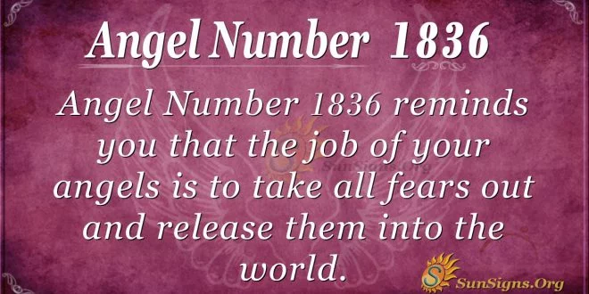 What does 1836 mean? Understanding that you may be fearful for a future that seems uncertain at the moment, Angel Number 1836 reminds you that the job of your angels is to take those fears and release them into the world. Allow them to come inside of you and take those fears and worries away so that you are left with only positive energy about an exciting future waiting for you to take advantage of it.
