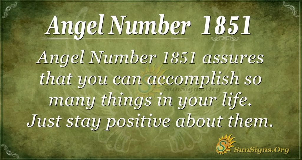 Things you should know about 1851 are that it is time to show the world you can do better. Wanting you to know that everything happening is for the best, 1851 angel number asks you to remember that you can accomplish many things in your life if you stay optimistic about them.