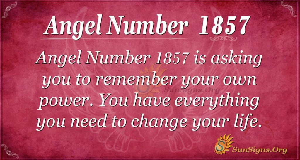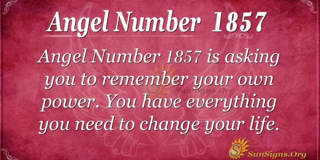 Your angels are asking you to remember your power with Angel Number 1857. You have everything you need to change your life, and the divine forces want you to know that now is a great time to do it.