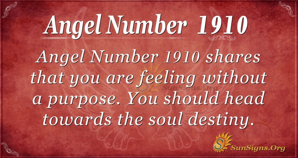 When you feel without a purpose, your angels ask that you take a few minutes to remember where you are heading. The 1910 angel number shares that you should be heading toward the soul destiny that your angels have created for you. If you are not sure where that is yet, all you need to do is go out there and ask your angels for support and guidance.