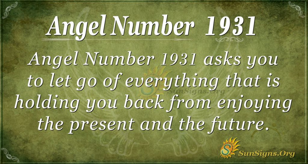 The meaning of 1931 signifies that the divine beings have some messages to better your life. Asking you to remember that it is required to enjoy your life to the fullest, Angel Number 1931 asks you to let go of everything in your life that is holding you back from enjoying the present and the future.