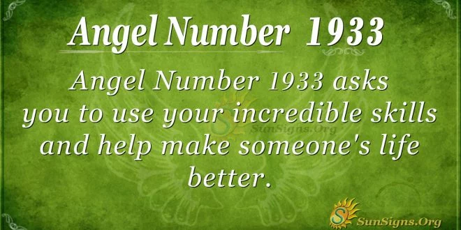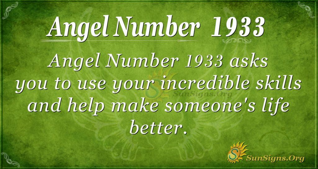 The meaning of 1933 has puzzled you for some time, and you wonder what 1933 means. Sharing that you have some incredible abilities related to your spiritual connection, Angel Number 1933 asks you to go out there and take full advantage of those skills and help make someone’s life better.