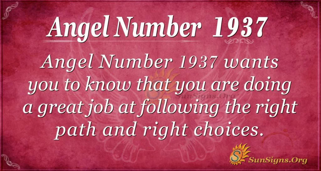 What is the meaning of 1937? I am proud of you and all of the progress you have shown lately; Angel Number 1937 wants you to know that you are doing a great job following the right path and making all the right choices for your life.