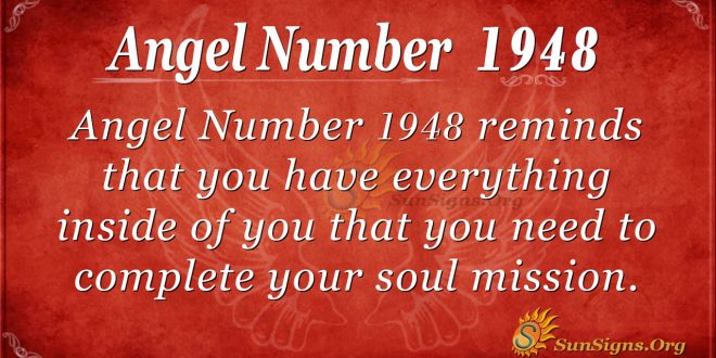 No matter what the world tells you, remember that you have everything inside you that you need to complete your soul mission. Angel Number 1948 wants you to always default to this if you require assistance putting your life in the right direction.